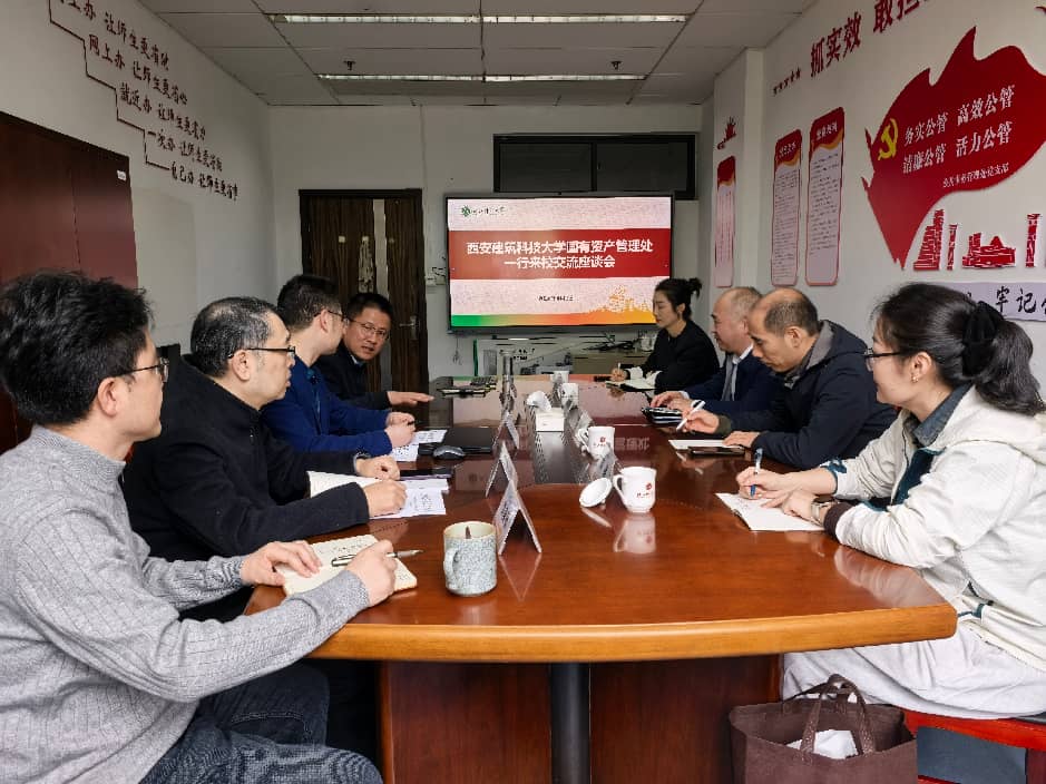 2026年4月2日,西安建筑科技大学国有资产管理处处长陈向阳、副处长张超、廖怡岚等一行来校交流座谈,我处丁杨广处长、傅新忠副处长等出席会议,双方围绕公房管理、住房管理、采购实施及信息化建设等开展深入探讨。